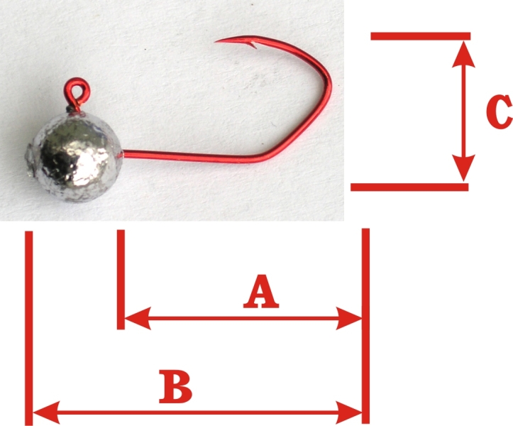 JIG háčik bez krčka, háčik v červenej farbe s olovenou záťažou, používa sa pri ľahkej prívlači na napichnutie a zaťaženie rôznych gumených nástrah, (twister, banjo, ripper, kopyto..)