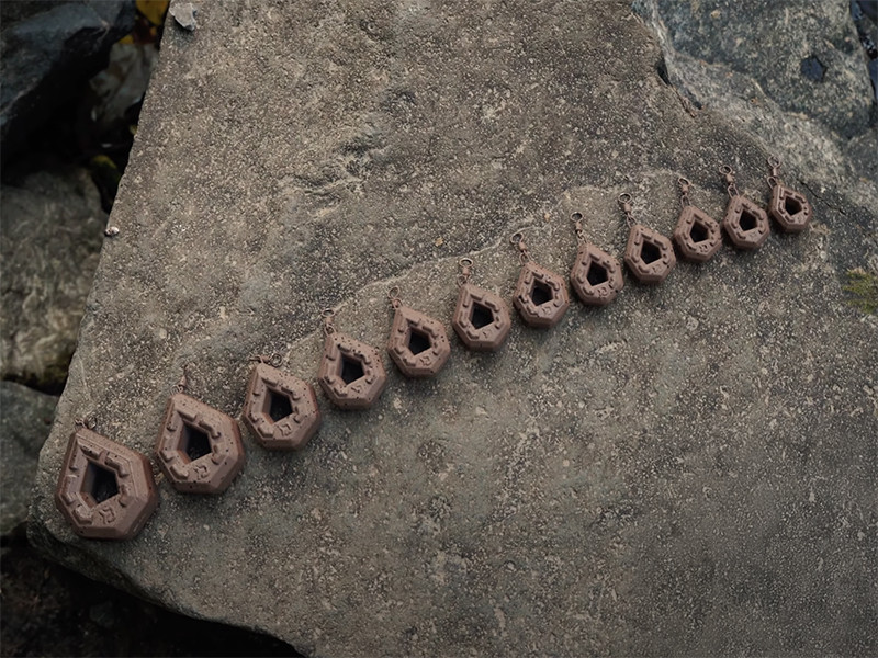 Je inovatívna záťaž dizajnovaná tímom značky Delphin, vhodná pri love na odhod na členitom dne, alebo pri love na tečúcich vodách. Vďaka jedinečnému hranatému tvaru bolo možné vytvoriť kompaktnejšiu záťaž, ktorá má pri menších vonkajších rozmeroch rovnakú hmotnosť ako bežne predávané olová podobného typu. To zaručí výborné nahadzovacie vlastnosti a rýchle klesanie ku dnu. Pre docielenie čo najdlhších a najpresnejších hodov je navyše spodná časť záťaže rozšírená, aby sa tu koncentrovalo viac hmoty a tak predlžuje Vaše hody o ďalšie dôležité metre! Výstupky na hlavných plochách záťaže eliminujú kĺzanie po dne. Otvor v strede záťaže umožňuje rýchlejšie klesanie montáže vodným stĺpcom. Povrch záťaže je chránený farbou v prírodných odtieňoch hnedej s čiernymi fŕkancami, čo dokonale kamufluje jej prítomnosť na dne. Zväčšené očko na obratlíku umožňuje jednoduchšie a rýchlejšie upevnenie záťaže na montáž.