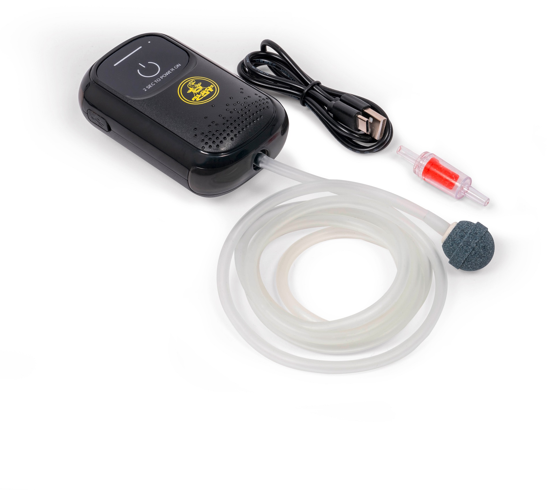 • Obsah balenia: dlhá vzduchovacia hadica, vzduchovací kameň a nabíjací kábel.